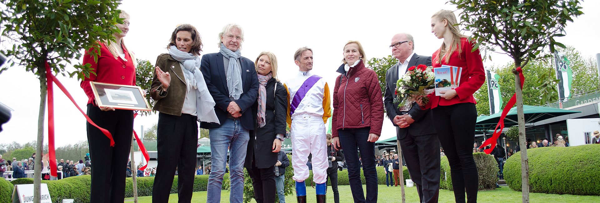 Walatah heißt die Siegerin des primetec Pokal beim diesjährigen Renntag am 1. Mai auf der Neuen Bult. Beim Wettlauf der dreijährigen Stuten setzte sich die Favoritin vom Gestüt Park Wiedingen gegen ihre acht Konkurrentinnen durch. Das junge Pferd erhielt dafür ein Preisgeld in Höhe von 6.000 Euro. Als Sponsor des vierten Laufs beim Großen Hannover 96 Renntag überreichte Dietmar Götze, Geschäftsführer der primetec GmbH, den Ehrenpreis. Aus der Gartenlounge heraus verfolgten die zahlreichen Gäste der primetec die Siegerehrung – darunter auch Sabine Tegtmeyer-Dette, die Wirtschafts- und Umweltdezernentin der Stadt Hannover. Sie waren der Einladung des hannoverschen Unternehmens gefolgt, das nun schon zum dritten Mal in Folge den Sicherheitsdienst für die Rennsaison in Langenhagen stellt.